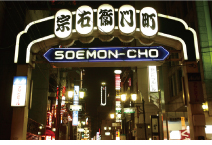 「特命係長 只野仁 最後の劇場版」で、只野仁役の高橋克典さんと、電王堂の大阪支社社員山西裕一役の赤井英和さんが接待の後に出てきたシーンが撮影されたのが、ミナミの一大歓楽街・宗右衛門町でした。また「女帝」では大阪のクラブがあるエリアとして紹介されていました。 |